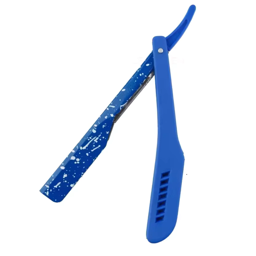 Navaja de dos cuerpos, diseñada especialmente para el uso profesional en barbería. Su estructura resistente y el diseño ergonómico en color azul facilitan un agarre cómodo y seguro durante el afilado y corte. Ideal para barberos que buscan precisión y calidad en cada servicio. Producto indispensable para un acabado profesional y seguro.