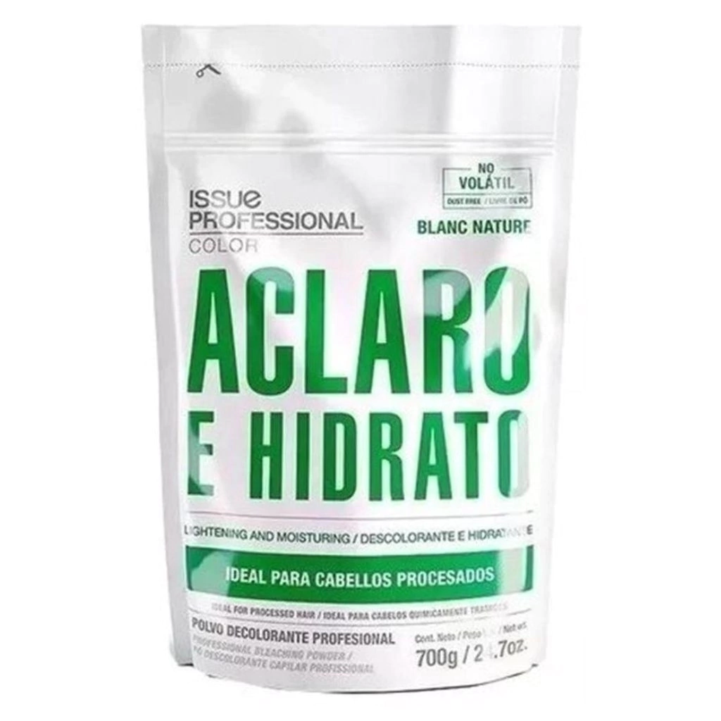 Polvo Decolorante Issue Aclaro e Hidrato Blanc Nature 700g es ideal para cabellos procesados. No es volátil recomendado para utilizar en cabellos procesados, con colores muy oscuros.